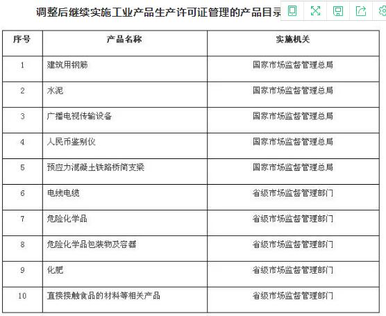 2.調(diào)整后繼續(xù)實(shí)施工業(yè)產(chǎn)品生產(chǎn)許可證管理的產(chǎn)品目錄(共計(jì)10類)